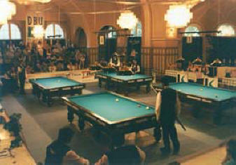 | Kray-Nord Am 17.12.1955 wurde der Billardverein mit dem Namen “Billardfreunde Kray-Nord 1955“ in der Gaststätte Leo Heinrichs (Nordpol) gegründet. Zu den Mitgliedern der ersten Stunde zählten : Manfred Nieberlein, Hans Wienold, Herbert Gitt, August Pitten, Willi Klöckner, Ernst Hochstein und Fredi Schwak. Deutsche und internationale Meister der unterschiedlichsten Billarddisziplinen kamen zu Schaukämpfen nach Kray, so dass der Verein schnell einen regen Aufschwung nahm. Nach den ersten erfolgreichen Jahren kam es 1964 mit der Gründung des "Krayer BC" zu einer ersten Abspaltung. Im Jahr darauf zog man zum Krayer Markt, wo man bei Elvira und Hermann Storck im "Schwarzen Diamanten" für weitere zwanzig Jahre eine angenehme und sportlich erfolgreiche Bleibe fand. Weitere Stationen waren das "Haus Meerbeck" mit dem Vereinswirt Manfred Lubeck und schließlich Räumlichkeiten der Eventhalle "Walkabout" im Gewerbegebiet Kray. |  | |||||||||||||||||